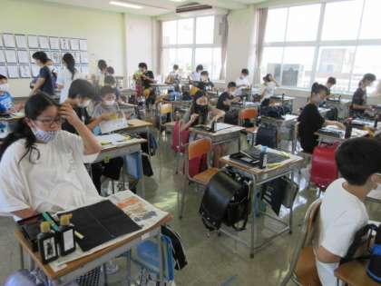 大事な時間のことについて、ひとりひとりが句を考え、筆で表していました。