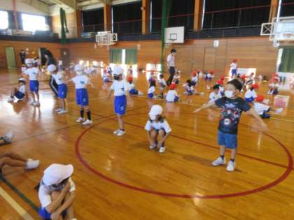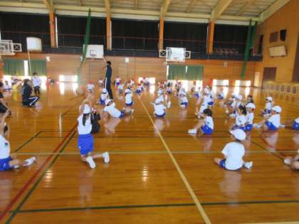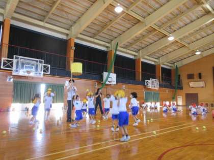 1・2年生が、玉入れの練習を始めています。