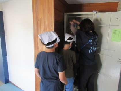 掃除ロッカーも整頓し、柱の根元もスッキリとしました。(右写真)