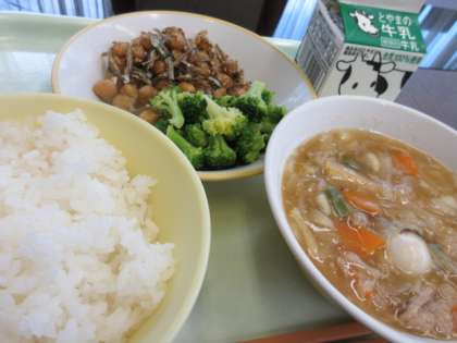 ごはん 牛乳 八宝菜 ゆでブロッコリー 小魚入りフライビーンズ です。