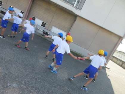 気温が上がる前に、全員リレーの練習をしています。