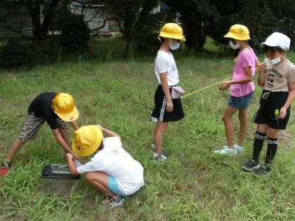 「ありが卵をはこんでいるよ!」「とんぼつかまえた!」「せみのぬけがらを2つ見つけた!」子供たちは観察上手です。