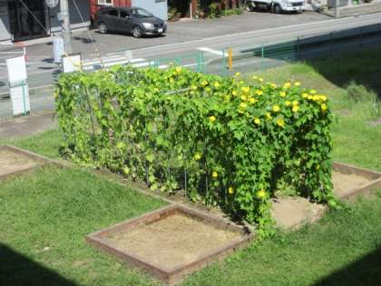 4年生が育てているへちまです。 たくさん実を付けています。