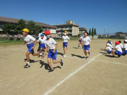 学年毎に、全員リレーを行いました。