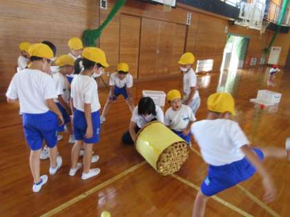 2年生が、玉入れの球の数を暗算しようとしていました。