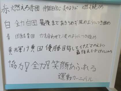 「協力!全力!笑顔あふれる運動カーニバル」にかける各団の思いです。 6年生が考えました。