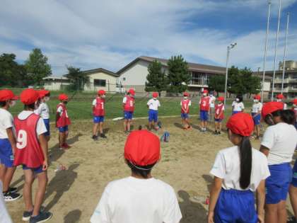 練習が終わった後、5・6年で今日の練習をふり返っています。