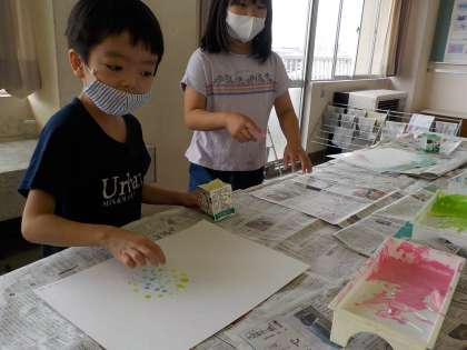 指や手のひらを使って、ねんどの感触を楽しみました。
