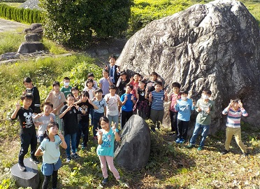 また、大場の大転石では、「こんな大きな石が大地震で転がるなんて、水の勢いに驚いた。」や「この大きな石を転がすほどの力だったのだから、被害は想像できないな…。」など、予想以上の大きさに驚きの声をあげていました。