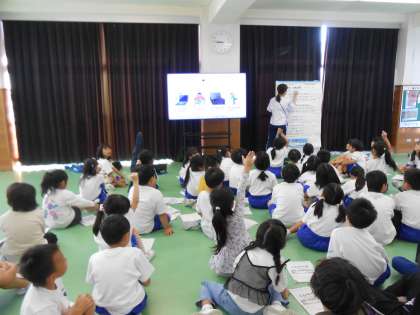 私の学び発表会に向けて、セリフや歌の練習をしています。休み時間にもセリフ練習を進んでしている様子が見られます。子供たちは小学校生活初めての学習発表会に向けて、やる気がいっぱいです。