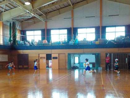 攻めるペアと守るペアに分かれ、15秒の間に激しい攻防が繰り広げられます。フェイントをかけたりパスを回したりするなど、得点を入れるためにはどうすればよいか考えながら体を動かしていました。