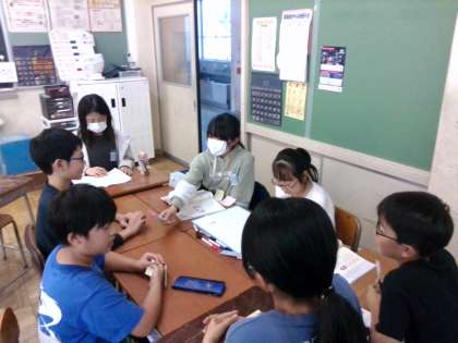国語科「よりよい学校生活のために」の学習では、「給食をマナーよく食べ切るためにどうすればよいか」というテーマで話し合いました。子供たちは、グループでよりよい解決策を考えていました。
