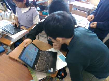 理科「台風と天気の変化」の学習では、台風による災害から生命を守るためにできることについて話し合いました。子供たちは、川が氾濫した場合の予想浸水範囲を洪水ハザードマップで確認し、「備え」の大切さに気付きました。