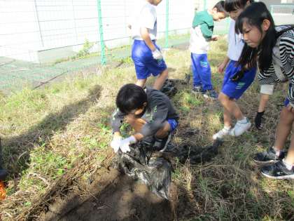 5月に苗を植え、大切に育て続けてきた野菜の植木鉢と、学年の畑の片付けをしました。