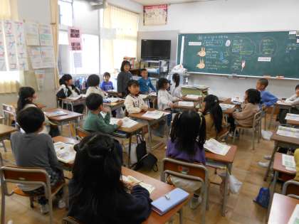 「はしの うえの おおかみ」という教材を使って、「あたたかい心」とはどんな心なのかみんなで話し合いました。「相手のことを進んで思いやる心」「みんながにこにこになる言葉や行動をする心」などと、真剣に考え発表しました。