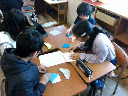 今日は、秋をテーマにした集会を開きました。子供たちは、つくった説明書を基に、折り紙できのこを折ったり、男女がペアになった王様ドッジボールをしたりしました。集会のテーマに合わせて、ルールや内容を工夫するなど、企画・運営力が高まってきています。