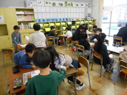今日から箱を使ったすごろくづくりをしていきます。つくる前に、実際に班の人とすごろくをしました。「すごろく楽しかった、どんなすごろくをつくろうかな」「みんなで遊べるすごろくを次の時間につくってみる」など、すごろくを楽しみながら、どんなすごろくをつくろうか考えている姿が見られました。