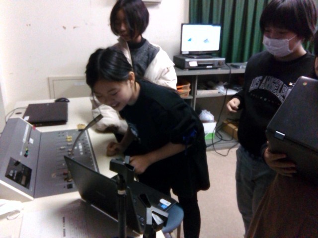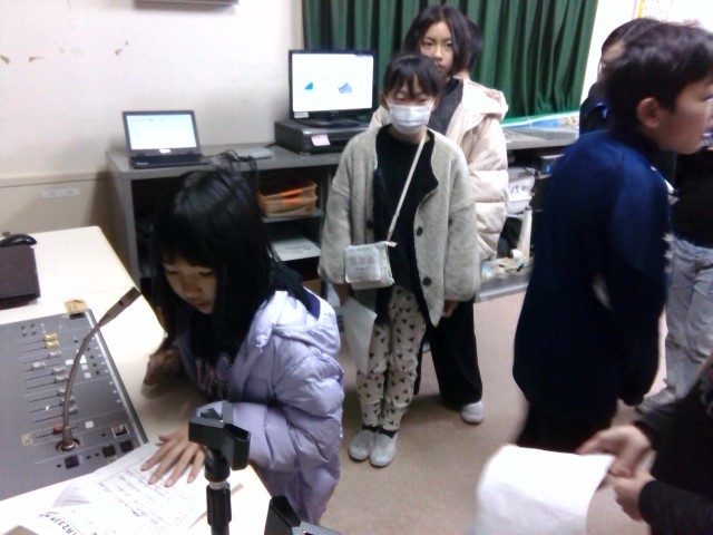 全校に放送している様子です。