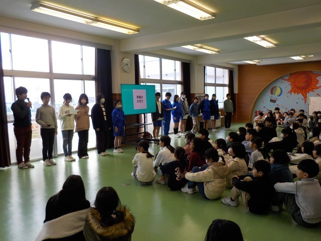 3学期から、委員会活動やそよかぜ班活動のリーダーを5年生に引き継いでいっています。今日は、6年生がこれまで活動してきた中で、困ったことや失敗したこと、うまくできなかったことを、5年生に語りました。そして、今後それらをどうしていったらうまくいくかまとめた内容を伝えました。5年生は、新年度の自分たちを想像しながら、とても真剣に聞いてくれました。