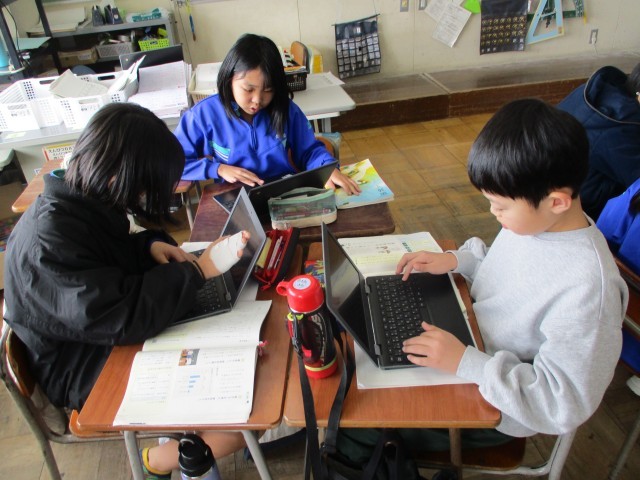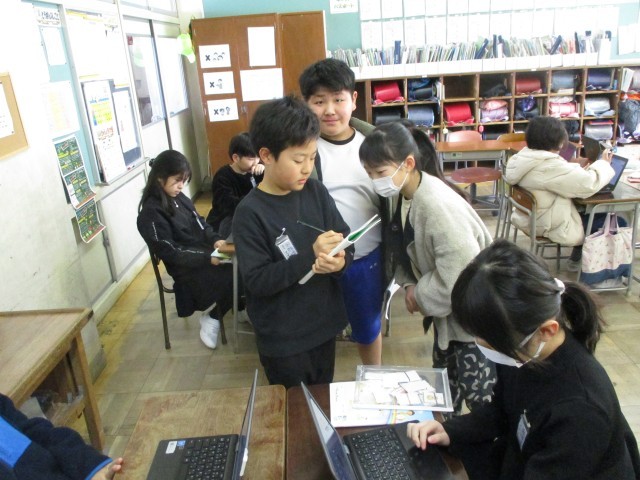 クラスのみんなが普段どんな生活をしているのか調査を行い、調査結果を基に発表する学習に班で取り組んでいます。リーダーを中心に一人一人が自分の役割を果たしていく姿から、自分たちで学習を進めていくたくましさを感じています。