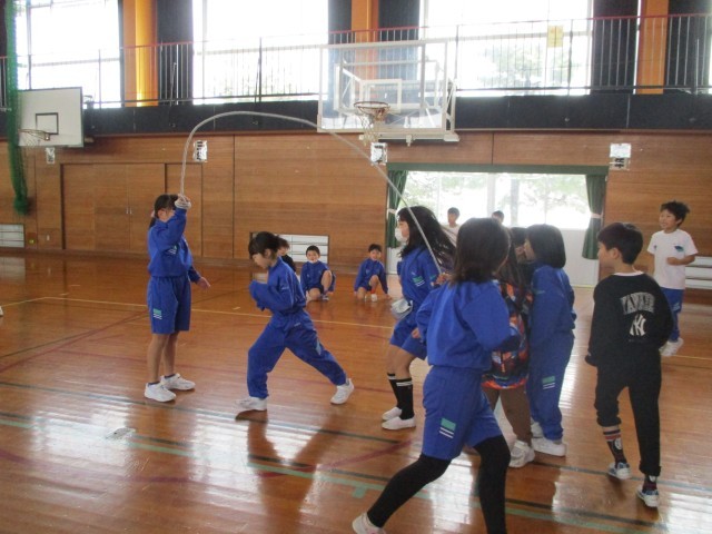 普段とは違う雰囲気の中での縄跳びに「ドキドキした」という子供や「思うように跳べなくて悔しい!」と涙を流す子供もいました。