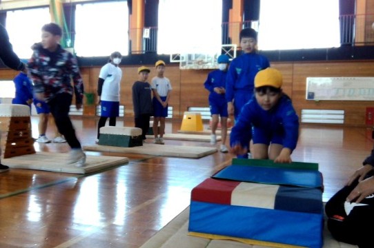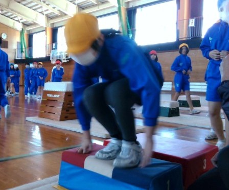 体育科では、開脚跳びや閉脚跳びの練習をしました。子供たちは、教えてもらったコツを意識しながら繰り返し跳んでいました。