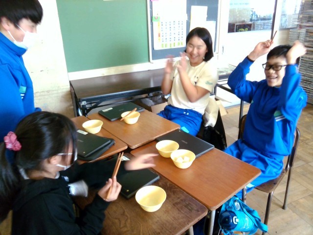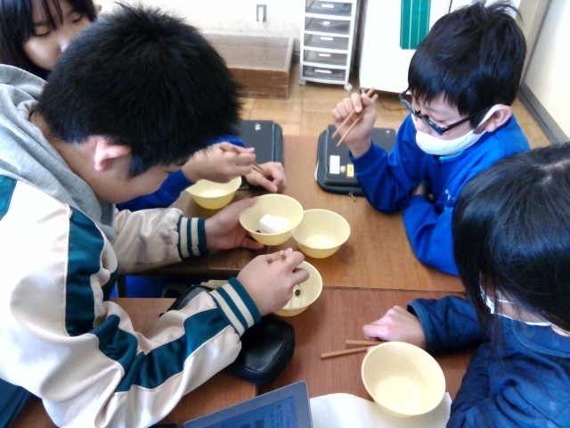 今日は、栄養教諭による箸の持ち方についての学習を行いました。子供たちは、自分の箸の持ち方を見直し、正しい持ち方で豆つかみゲームを行いました。豆をうまく運ぶことができると、グループのみんなで喜んでいました。