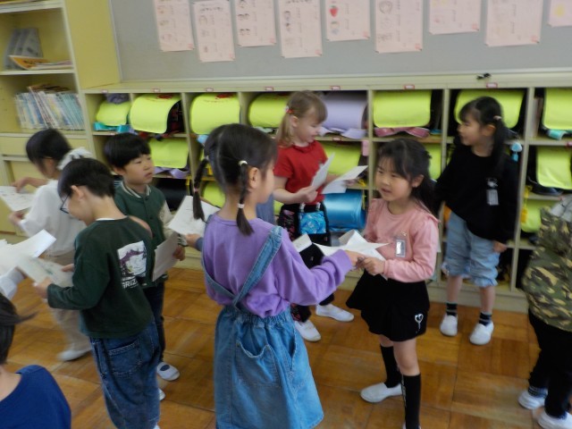 「ぼく・わたしの名前は◯◯です」「好きな◯◯は・・・」「よろしくね」