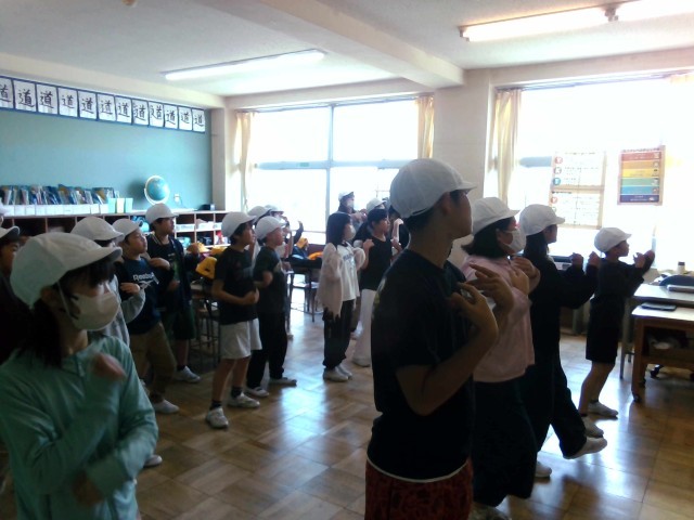 各団、応援合戦の流れを6年生に教えてもらいました。1〜4年生にも教えることができるよう、6年生のアドバイスを聞いて大きな声を出したり、繰り返し踊ったりしていました。