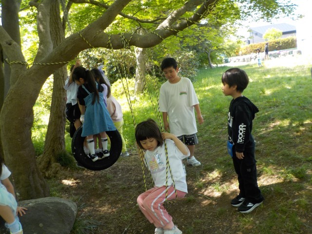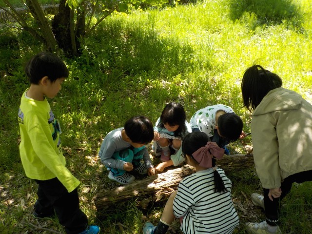 広田の森へ探検です。ブランコに乗ったり、だんごむしやお花を探したり・・・