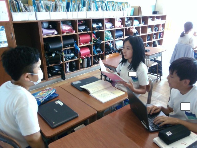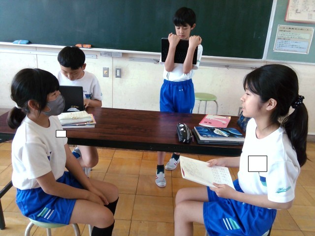 国語科「きいて、きいて、きいてみよう」では、話し手の人柄を引き出せるように質問を考えながらインタビューを行いました。子供たちは、話し手の話をよく聞き、臨機応変に質問を工夫していました。