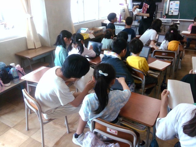 今日は、1年生の生活アンケートの入力の手伝いをしました。子供たちは、1年生がわかるように言葉を選んだり、ゆっくり話したりするなど、関わり方を考えていました。