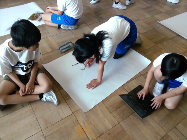 理科「動物のからだのはたらき」の学習では、内臓の位置や仕組みについて調べたことを基に、友達の解体新書をつくっています。