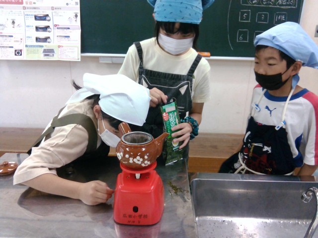 調理実習を行いました。今日は、安全においしいお茶を入れることを目当てにして、協力しながらお茶を入れました。