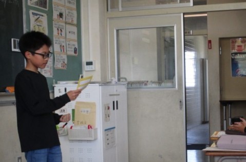 外国語では、自己紹介スピーチを行いました。子供たちははっきりと発音し、学級の友達に伝えようとしていました。