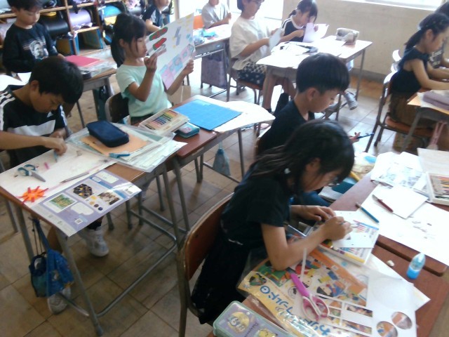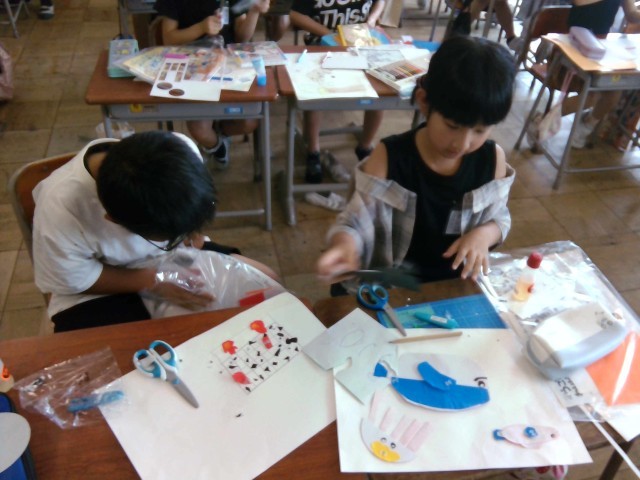 わりピンを使った回転する仕掛けを用いて作品を作っています。仕組みを理解して、自分の思いを作品に表していました。