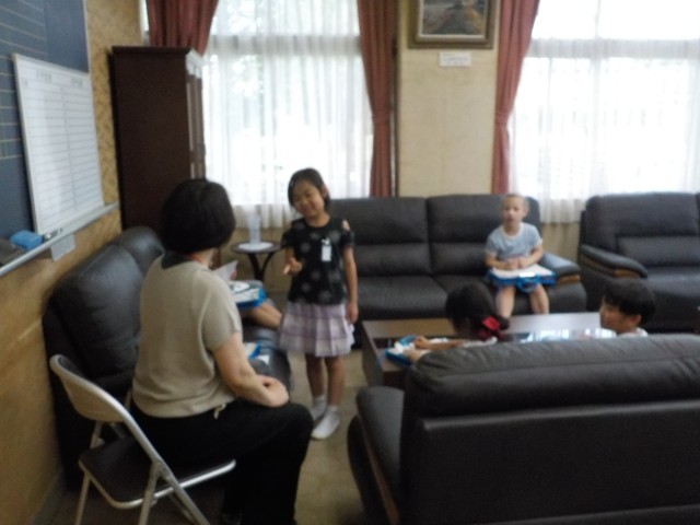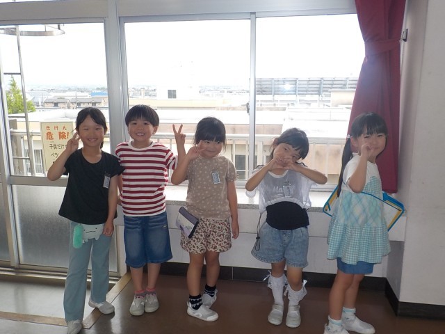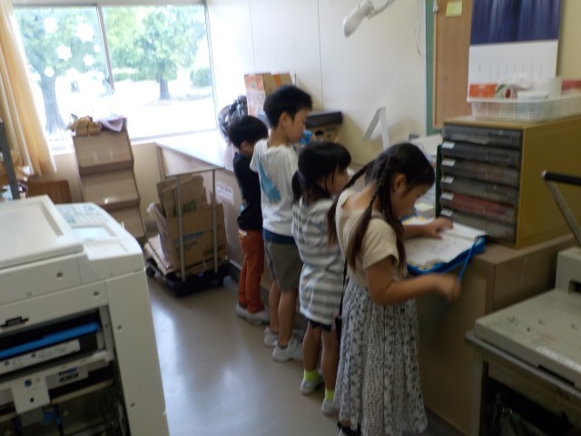 自分たちで行きたい場所を決め、学校探検をしました。「音楽室の太鼓が大きくてびっくりしたよ」「いつか私も放送室で放送してみたいな」などたくさんの思いを聞くことができました。