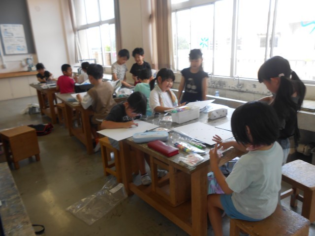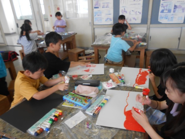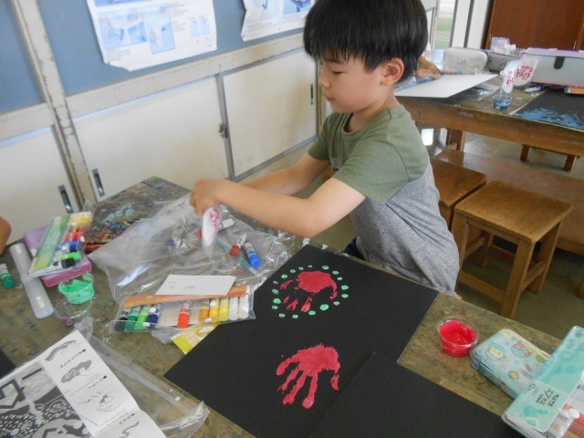 どろどろの粘土に絵の具を混ぜて、指や手を使って絵を描きました。どんな色をつくって、なにを描こうか真剣に考え、活動を楽しみながら取り組んでいました。