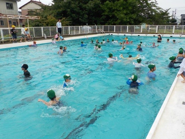 水温がまだ少し低かったですが、子どもたちは歓声をあげながらとても楽しんでいました。来週からも、きまりを守って楽しく水に慣れ親しんでいきたいと思います。