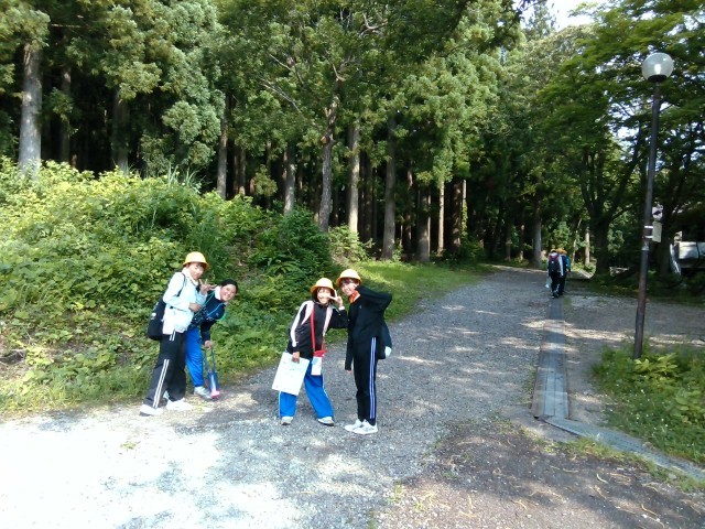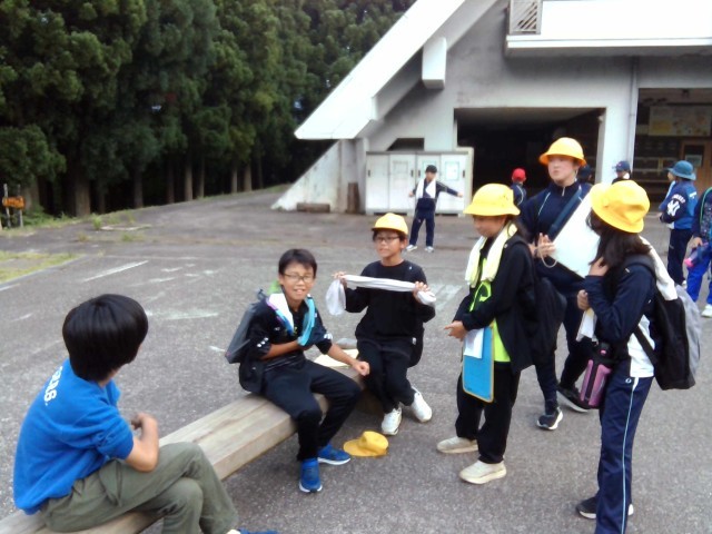 子供たちは、敷地に内に設置されているポイントを班の仲間と協力して、見付けています。
