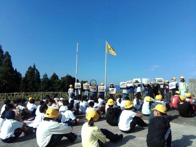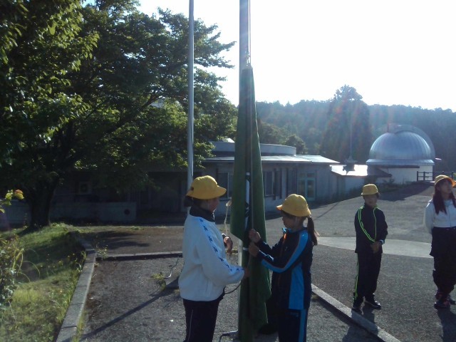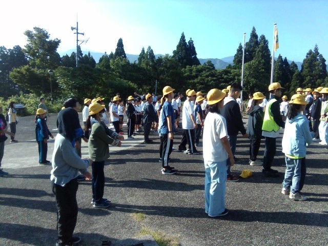 朝の集いでは、魚津市立星の杜小学校のみなさんと一緒にラジオ体操をしたり、学校紹介をし合ったりしました。