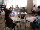 自分で貼った模様の上に再度白い和紙を貼りました。和紙を重ねながら丁寧に取り組みま...