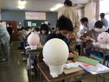 プロの職人さんに来ていただき和紙のランプシェードづくりに取り組みました。真っ白な...