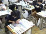 図画工作科では、空き容器に粘土を貼り付けてペン立てや宝物入れ等に変身させていま...