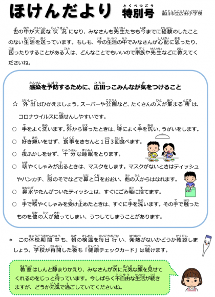 きょうは しゅうにいちどの でんわれんらくの ひでした。みんなの げんきな こ...