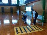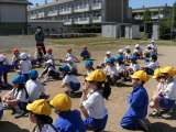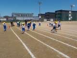今日は天気がよかったので、外で折り返しリレーの練習をしました。 バトンを渡す位...