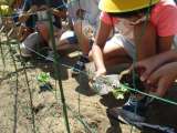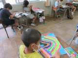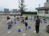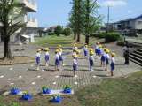 1年生が、朝の涼しいうちに外で活動をするために出てきました。 白いドットのとこ...
