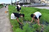 理科の「雨水のゆくえと地面のようす」の学習で砂と土の水のしみこみ方の違いを調べる...