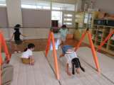 体育科でハードル走を学習しています。「着地してから3歩のリズムで調子よく走り越...