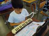 音楽科の時間に、鍵盤ハーモニカをしたり、1学期に学習した歌やダンスを歌ったり踊...